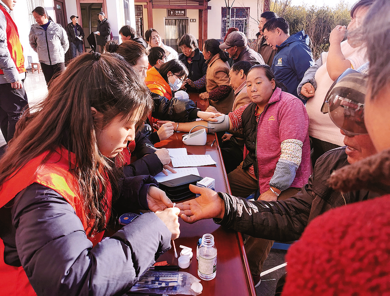 志愿者为群众测血糖本报讯 (通讯员 关 艳 韩廷旭)为深入推进“我为群众办实事”实践活动,提升优质资源服务效能,12月17日,柞水县人民医院在下梁镇西川村广场举行了“冬日送温暖”义诊主题党日活动,为群众送去了温暖关怀与健康守护,在寒冷的季节里编织起一张呵护生命健康的爱心网。