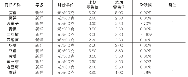 商洛市蔬菜农批市场价格监测情况(2024-12-24)