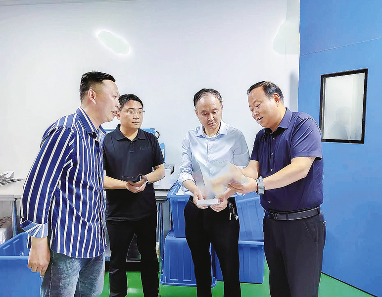 8月25日,市市场监管局党组书记、局长成小斌(右二)到化妆品生产企业调研。