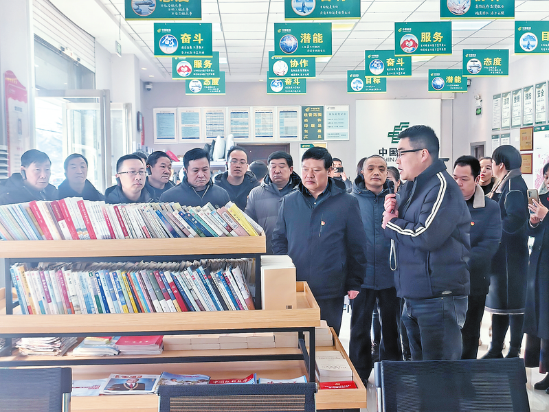 12月25日,洛南县召开“新兴领域”党建工作观摩推进会,旨在进一步推动“新兴领域”党建工作提质增效,助力行业和企业做大做强、健康发展。图为与会人员现场观摩洛南县快递行业党支部的红色快递驿站。(本报通讯员 毕波波 摄)