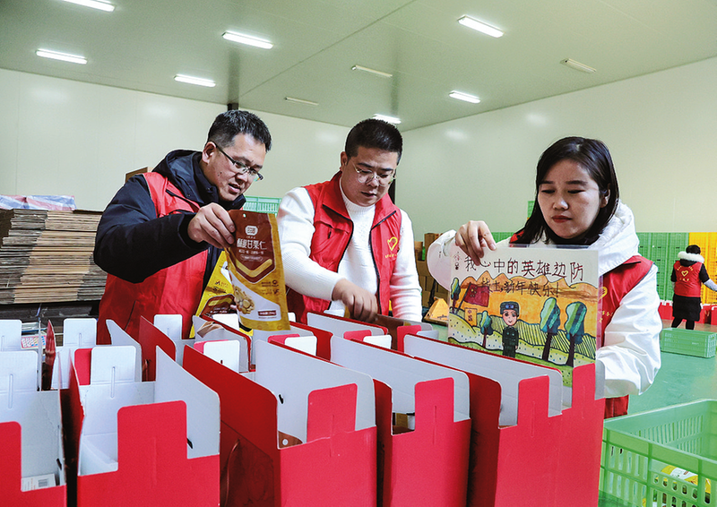 2024年12月31日,市双拥办工作人员精心挑选了核桃、腊肉、黑花生、豆干等商洛特色产品,并附上慰问信及商州区第一小学学生创作的手工绘画。这些特产、书信与绘画将制成一个个暖心礼包,带着商洛人民对坚守在边防一线的子弟兵的牵挂与关怀,踏上前往祖国边防部队的旅程,为那些在边关默默守护的战士送去温暖与祝福。