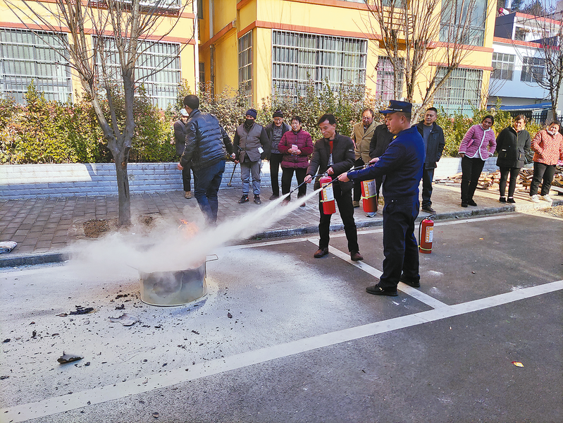 1月2日,丹凤县寺坪镇消防办在辖区移民安置点开展消防安全演练,通过发放宣传手册、观看警示教育片、手把手教群众规范使用灭火器等方式,让群众切身感受到安全无小事,进一步提升冬季安全防范意识。(本报通讯员 巩 鹏 摄)
