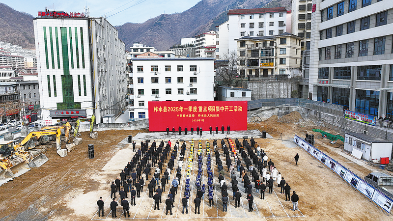 1月2日,柞水县举行2025年一季度重点项目集中开工活动。本次集中开工20个重点项目,总投资14.14亿元,年度计划投资11.19亿元。2025年,全县初步确定重点项目72个,总投资226.1亿元,年度计划完成投资50.88亿元。项目涵盖新材料、康养旅游、基础设施、绿色食品、农业及生态环境、清洁能源、社会民生七大类。 (本报通讯员 杨园沁 摄)
