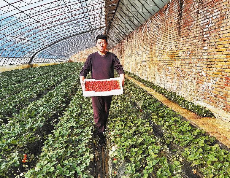 2024年12月26日,位于商州区麻街镇的仙湖蔬菜种植农民专业合作社大棚内,工作人员正在采摘刚刚成熟的草莓。据了解,该合作社今年冬季种植草莓30亩,产值可达六七十万元。 (本报记者 杨 鑫 摄)