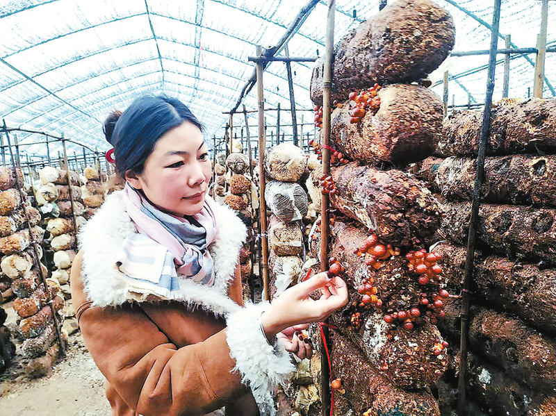 王婷检查滑子菇长势