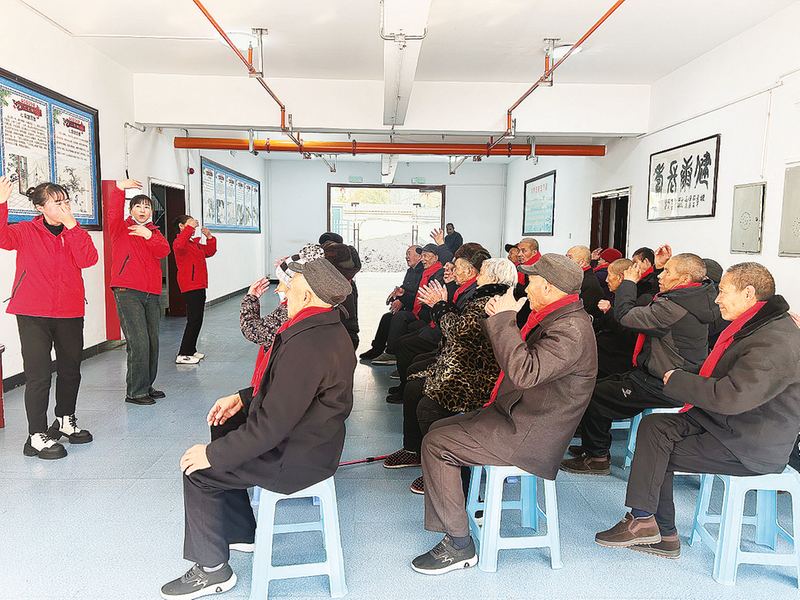 1月3日,山阳县中心敬老院老人在工作人员的带领 下练习手指操。近年来,该院持续改善配套设施、创新管 理模式、提升服务品质,打造快乐养老新模式。 (本报记者 肖 云 摄)
