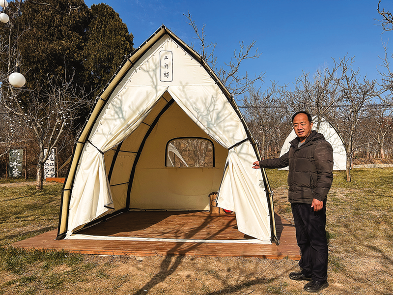 上河村农耕体验园里,梯田沿山势而上,层层叠叠,虽是隆冬,被单位和个人认领的地块仍有零星的绿意。凛冽的风中,吴旭东凝眸回望,漫山的核桃树、小块菜地、白帐篷、草屋,铺展成一幅浑然天成的多彩画卷。
