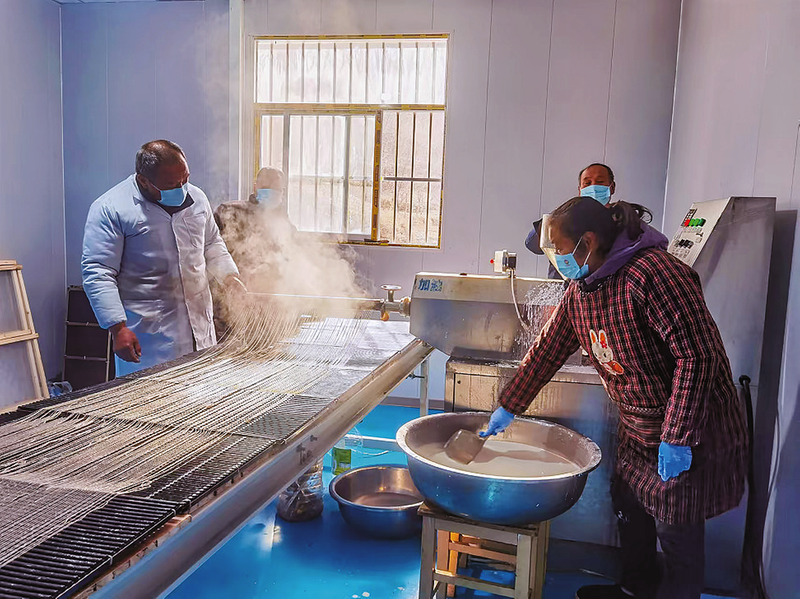 近期,柞水县曹坪镇荫沟村村民忙着加工粉条供应春节市场。近年来,荫沟村采取“集体经济组织+农业专业合作社+农户”的模式,发展红薯粉条产业,助力当地村民增收。 (本报通讯员 李 翔 摄)