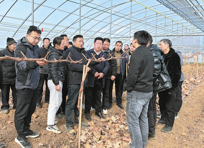1月15日,丹凤县农科教信息中心在竹林关镇王塬村举办2025年冬春农民培训,邀请专家在冬枣园、葡萄园等地进行现场教学,手把手教各镇致富带头人和产业种植户等学习科学管护知识。(本报通讯员 苏甜甜 摄)