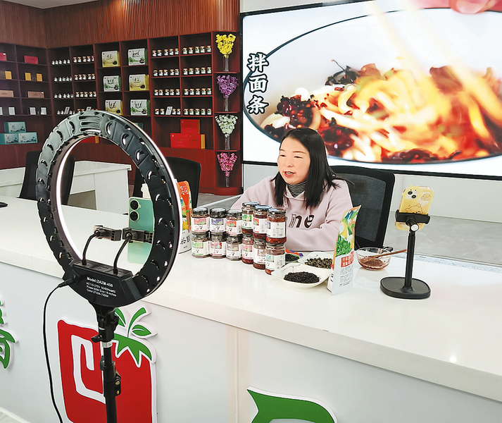 1月11日,在陕西汀味融绿色农产品开发有限公司,一场观众反响热烈的直播活动在进行中。清爽的商南茶与香浓刺激的辣椒还有莴笋干能擦出什么火花?