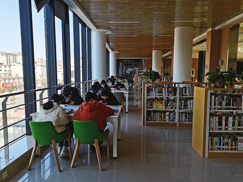 在洛南县图书馆内,不少学生专心阅读,徜徉在知识海洋里。