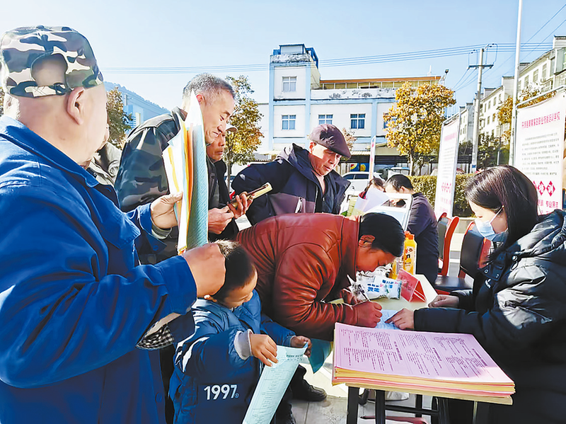 1月16日,丹凤县竹林关镇丹水社区举办“春风行动”招聘会,现场群众络绎不绝,纷纷填写就职申请表。 (本报通讯员 晏 莎 摄)