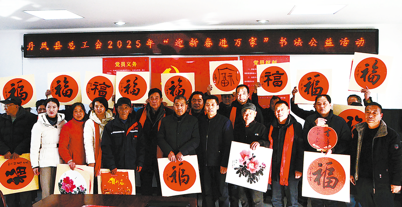 1月14日,丹凤县总工会联合县书法家协会开展“迎新春进万家”书法公益活动,为群众义写春联、福字等200多副。据悉,该县总工会将在全县企业车间、工地园区等地持续为职工群众送上新春祝福。