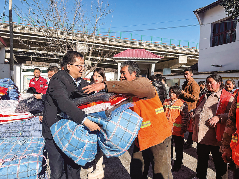 近日,商州区政协组织区工商联会员企业陕西蓝晟医药有限公司和西安市民安应急救援中心、西安车坛利哥等,以及社会爱心人士联合开展“迎新春·送温暖”捐赠慰问活动,为杨斜镇郭湾村和麻街镇雷凤村困难党员、困难群众、高龄老人及困难政协委员送去了价值近6万元的棉衣棉被、常用药品等,让他们在寒冬中感受到了来自社会各界的温暖与关爱。(本报记者 杨萌 摄)