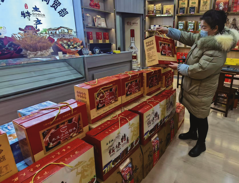 礼盒装的腊肉受顾客青睐进入腊月,镇安县木王镇坪胜村的锦泰腊味加工厂迎来了最忙碌的时刻。工人们忙着选肉、腌制、熏烤,一块块色泽红亮的腊肉在烟火缭绕中逐渐散发出诱人的香气,这是属于冬日的独特味道,也是“木王腊肉”走向市场的开端。