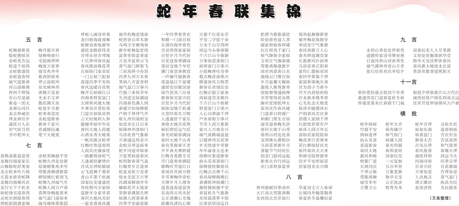 蛇 年 春 联 集 锦