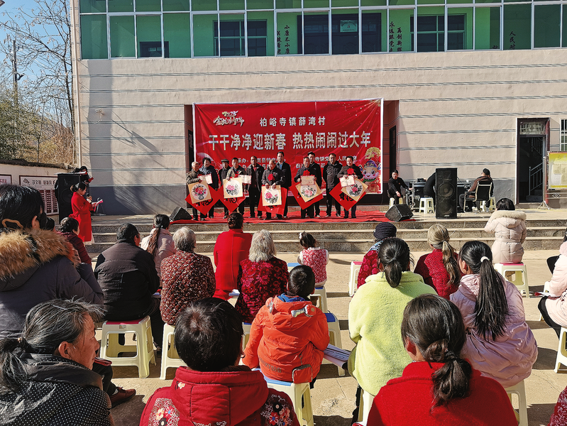 为营造干净整洁、喜庆祥和的节日氛围,丰富群众文化生活,1月19日,洛南县柏峪寺镇薛湾村联合包扶单位县特色产业发展中心在村党群服务中心广场举办“干干净净迎新春 热热闹闹过大年”文艺演出暨义写春联活动。 (本报通讯员 杨开让 摄)