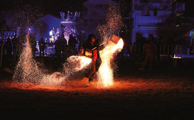丹凤葡萄星球乐园的非遗打铁花和火壶表演吸引众多游客观看 (本报通讯员 郝建勋 摄)