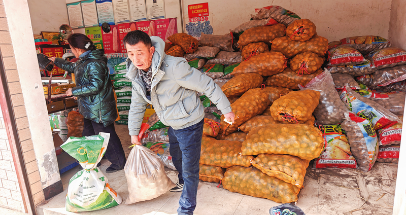 2月7日,群众在商州区鑫农粮仓种业科技有限公司销售部采购土豆种子。据了解,今年商州区市场销售的土豆种子每公斤3.6元,与去年价格持平。 (本报记者 杨 鑫 摄)