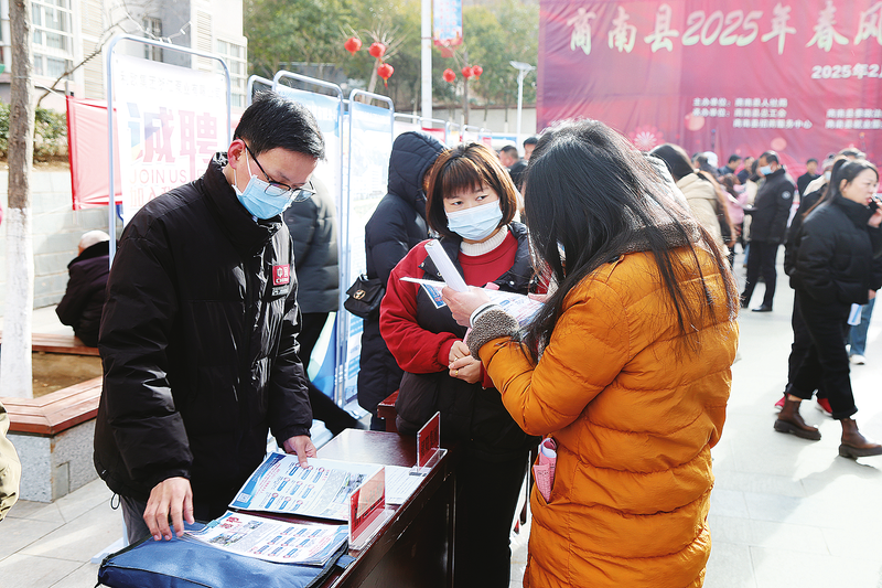 2月7日,商南县2025年“春风行动”专场招聘会在城关街道金福湾社区举行。活动现场,来自省内外的200多家企业提供就业岗位5000多个,800多名求职者参加了招聘活动。经过招聘洽谈,当天达成就业意向155人。