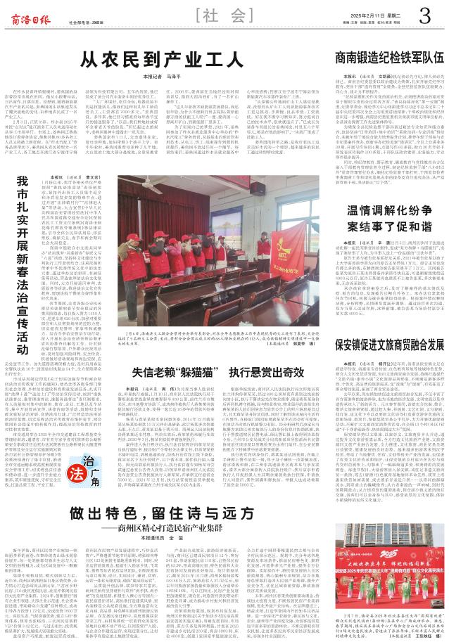 本报讯 (通讯员 辛 潇)2月5日,商州区沙河子法庭成功化解一起民间借贷纠纷案件,促成“双方和解+当庭履行”,实现了案结事了人和,为当事人送上一份温暖的“司法年货”。