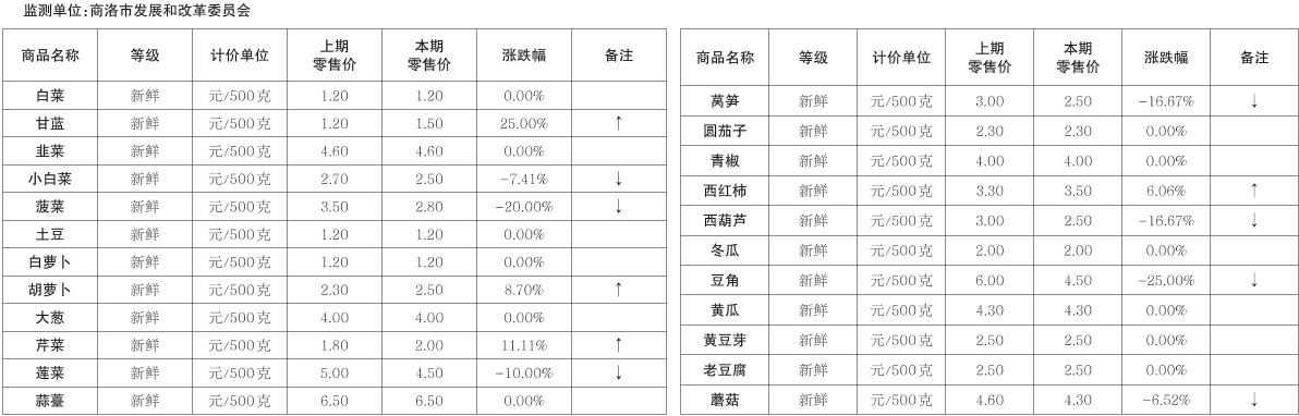商洛市蔬菜农批市场价格监测情况(2025-02-11)