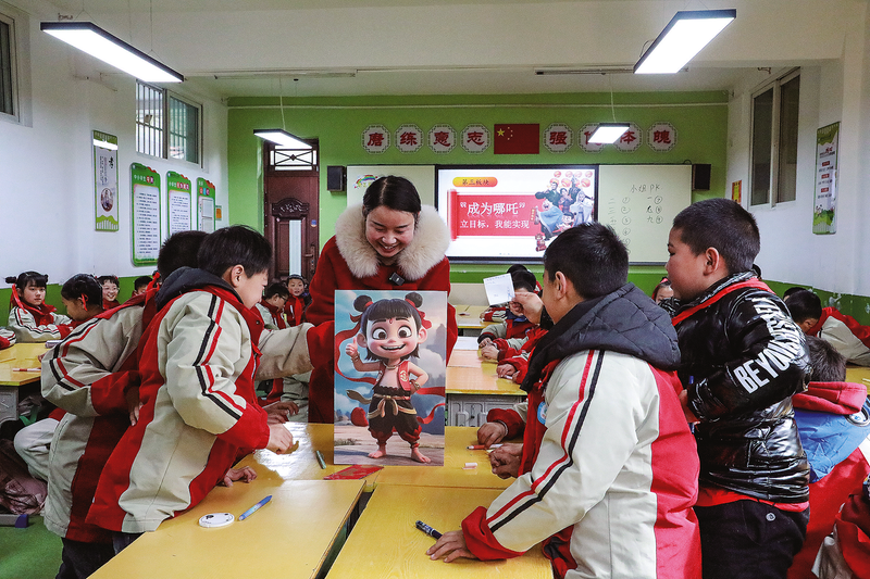 当日,商州区第三小学四年级三班开展“哪吒精神点亮新学期”主题班会。班主任张文静化身“心灵导师”,把热播动画《哪吒之魔童降世》融入课堂,帮助学生从“假期模式”切换到“校园模式”。