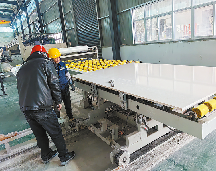 2月14日,镇安县高峰镇新型材料科技开发产业园里,陕西均健佳实业有限公司的工人正在进行汉白玉石材深加工。该公司充分利用高校先进的材料研发技术,对原料百分之百利用,实现零排放、无污染,极大提升了开采能力、延长了产业链、提高了附加值。 (本报记者 马泽平 摄)