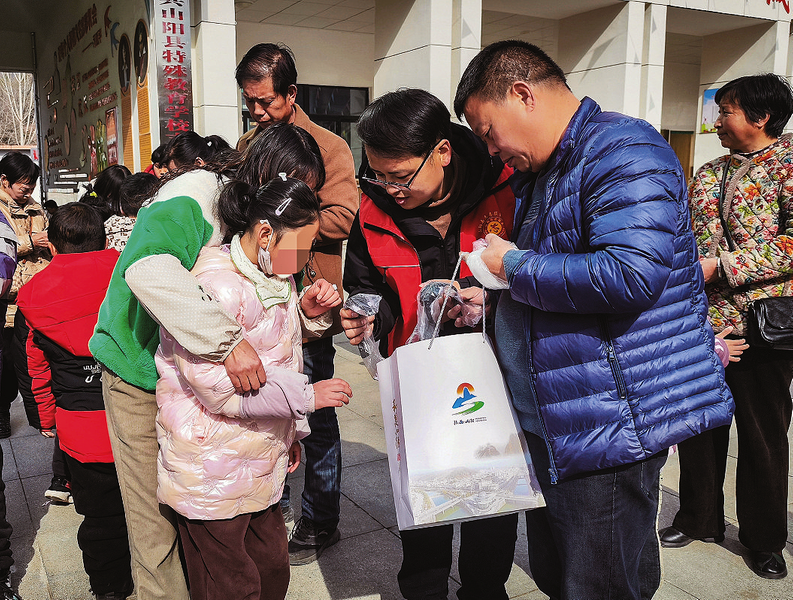 2月18日,山阳县志愿服务联合会来到县特殊教育学校开展“关爱儿童爱心捐赠”志愿服务活动,为40名儿童送去了牛奶、糖果、电子手表等,以实际行动为孩子们的生活增添色彩。 (本报记者 方 方 摄)