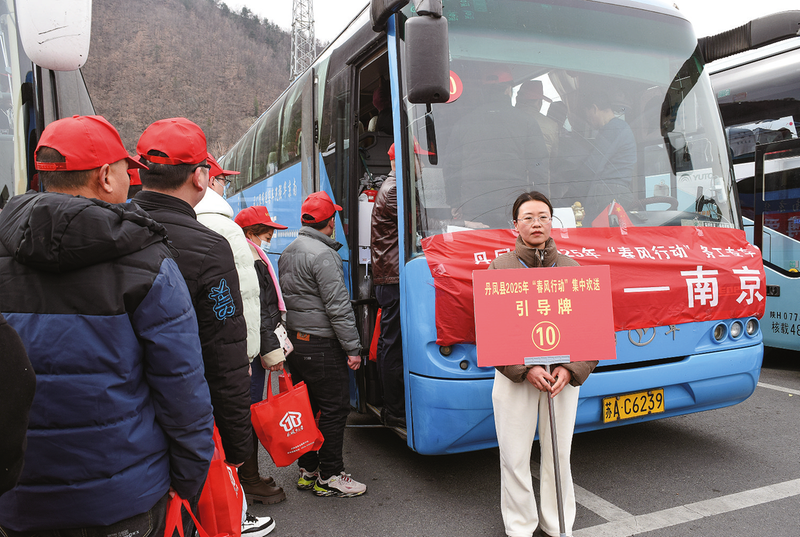2月6日,丹凤县务工人员乘坐前往南京的专车,踏上返岗之旅。
