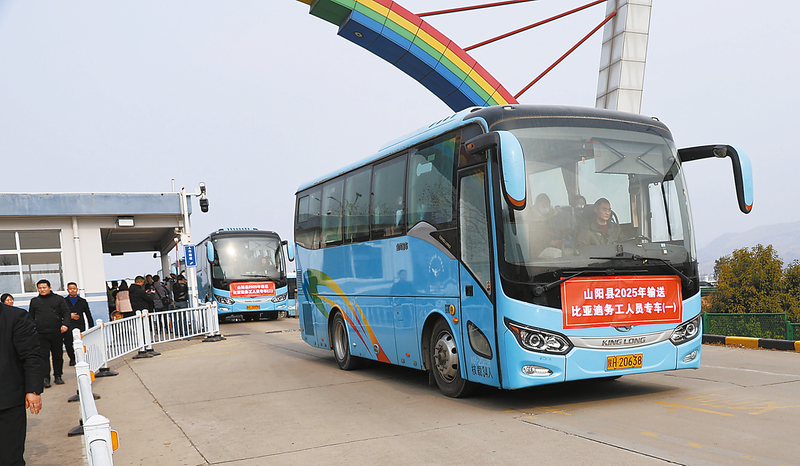 今年以来,商洛高新区积极对接市人社部门、各县区人社及就业相关部门,汇聚全市力量,多举措缓解用工缺口。图为2月19日,山阳县向商洛比亚迪公司输送务工人员。 (本报记者 程思凡 摄)