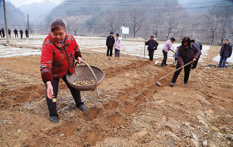 近日,山阳县中村镇洛峪沟村土豆种植已接近尾声。据了解,该村今年计划种植土豆450多亩,优选63吨“荷兰15”品种,储备化肥21吨、地膜80卷分发给村民。 (本报记者 王孝竹 摄)