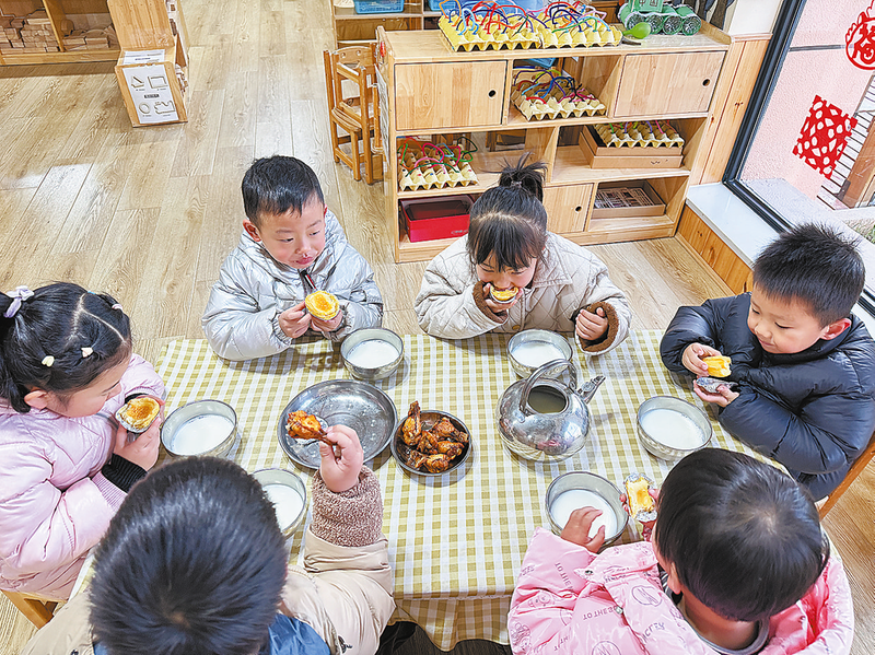 “幼儿期是生长发育的关键期,这一时期幼儿的身体发育需求旺盛,我们会努力在食品的制作上精细化、多样化、营养化。”丹凤县第一幼儿园园长杨莉说,“餐点味道以清淡为主,粗细粮搭配,有些孩子鸡蛋吃多了厌烦,我们就做成蛋挞等小甜品,改善口味,确保孩子营养多样化。”