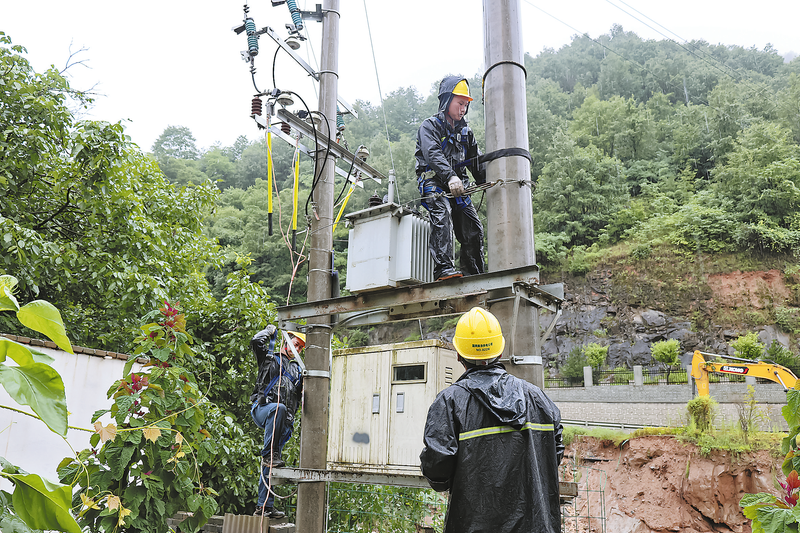 △国网商洛供电公司工作人员冒雨抢修受损电力设施