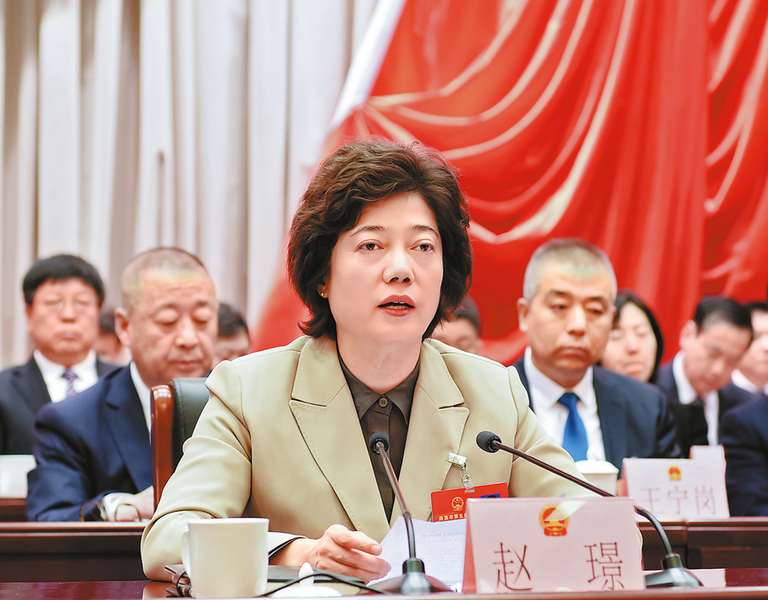 3月1日上午,商洛市第五届人民代表大会第五次会议在商州胜利闭幕。市委书记、大会主席团常务主席赵璟在会上讲话。(本报记者 李小龙 摄)