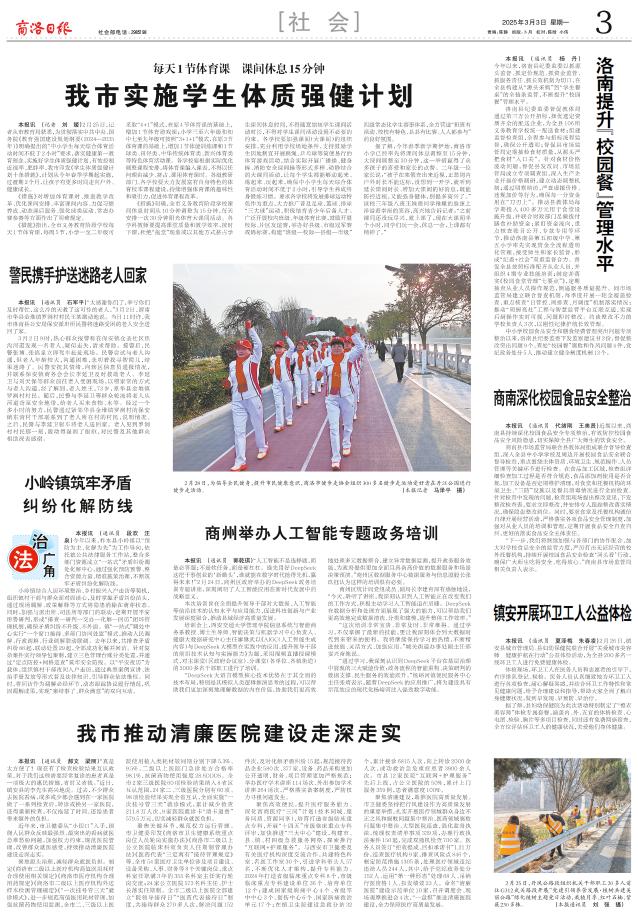 本报讯 (记者 刘 媛)2月25日,记者从市教育局获悉,为贯彻落实中共中央、国务院《教育强国建设规划纲要(2024—2035年)》明确提出的“中小学生每天综合体育活动时间不低于2小时”要求,落实健康第一教育理念,实施好学生体质强健计划,有效控制近视率、肥胖率,我市印发《学生体质强健计划十条措施》,计划从今年春季学期起实施,过渡期2个月,让孩子有更多时间走向户外、健康成长。