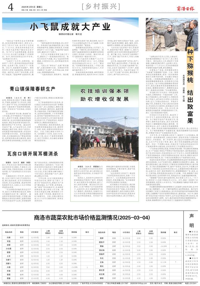 商洛市蔬菜农批市场价格监测情况(2025-03-04)