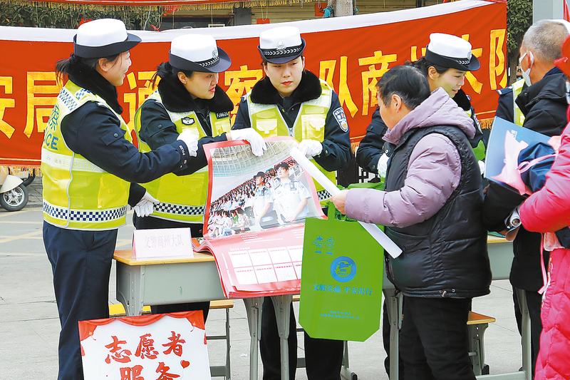3月5日,商州交警大队在戏曲文化广场开展“学雷锋守交规”道路交通安全主题宣传活动,通过设置宣传展板、发放宣传资料、现场讲解案例等形式,向群众普及交通安全知识,倡导文明出行理念,引导群众自觉遵守交通法规,争做文明交通的践行者和传播者。 (本报记者 方 方 摄)