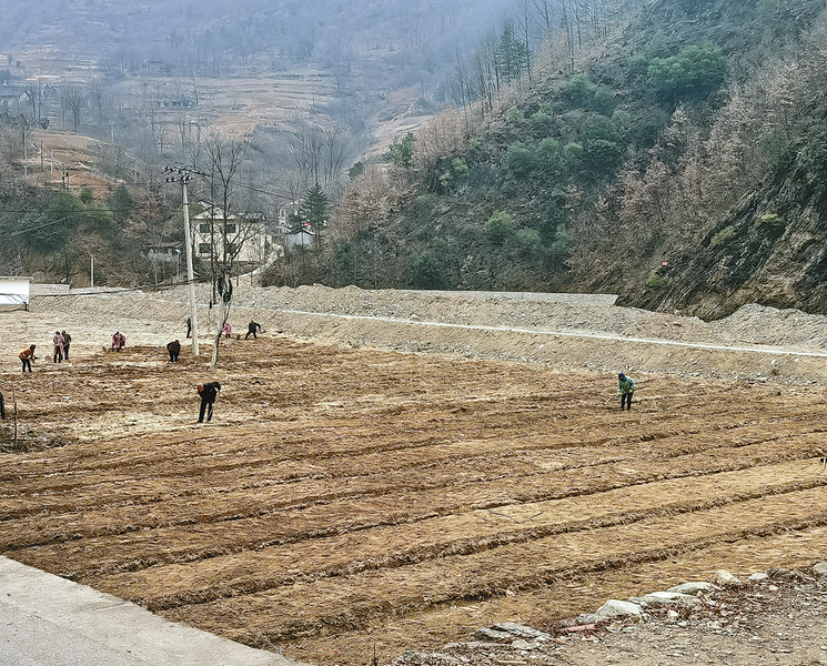 3月5日,柞水县红岩寺镇张坪村组织群众对去年水毁农田进行平整修复,确保春播生产。开春以来,红岩寺镇开启“加速度”,38个总投资5644万元涵盖水利、交通、农业等多个领域的重点项目正陆续开工建设。(本报记者 马泽平 摄)