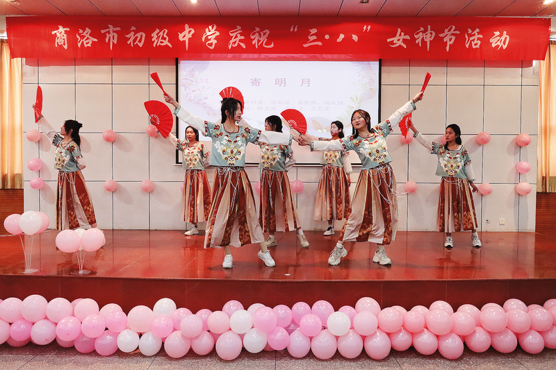 3月5日,商洛市初级中学举行“‘陕’耀巾帼志·建功谱新篇”庆“三八”妇女节活动。活动中,学校为“巾帼标兵”“五好家庭”“三八红旗手”等优秀女教师颁发荣誉证书,同时师生联袂表演了精彩的文艺节目,以此激励教师在工作中践行“巾帼不让须眉”的担当精神。(本报通讯员 陈小会 摄)