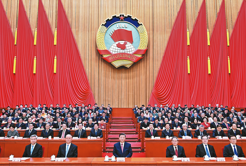 3月10日上午,中国人民政治协商会议第十四届全国委员会第三次会议在北京人民大会堂闭幕。全国政协主席王沪宁主持闭幕会并讲话。(新华社记者 刘卫兵 摄)新华社北京3月10日电 中国人民政治协商会议第十四届全国委员会第三次会议圆满完成各项议程,10日上午在人民大会堂闭幕。会议号召,人民政协各参加单位和广大政协委员要更加紧密地团结在以习近平同志为核心的中共中央周围,发扬优良传统,担当政治责任,推动新时代人民政协事业不断发展,为推进中国式现代化作出新的更大贡献。