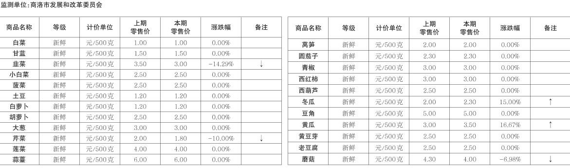 商洛市蔬菜农批市场价格监测情况(2025-03-11)
