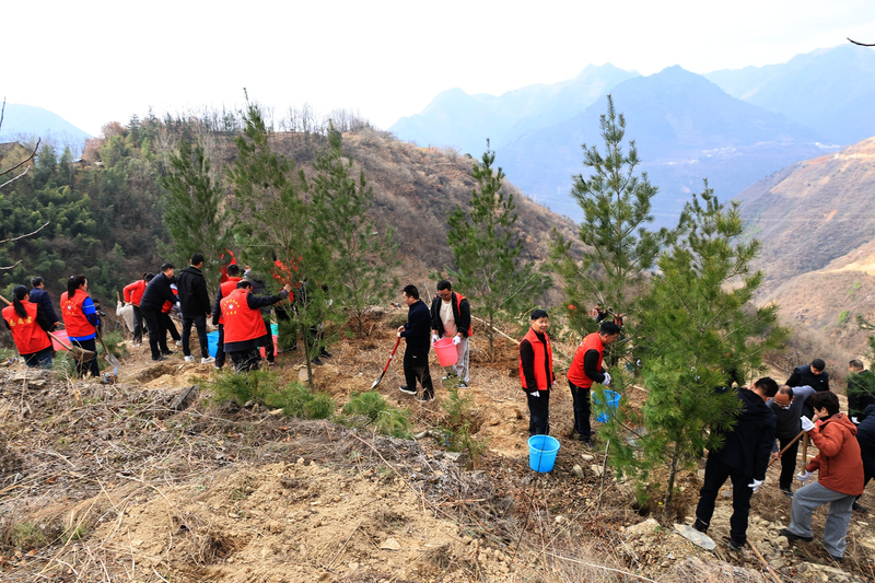 3月10日,镇安县林业局干部职工走进永乐街道安山村植树点,开展2025年义务植树活动,以实际行动践行绿水青山就是金山银山理念,共建绿色生态美丽家园。 (本报通讯员 李新武 摄)