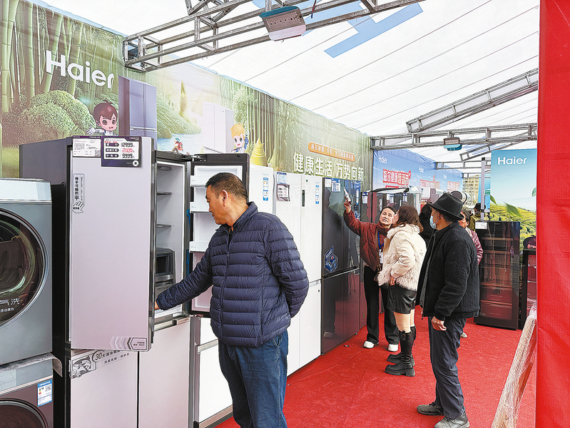 3月14日,由市商务局和商州区政府主办的2025年以旧换新“3·15”促销活动在丹鹤楼广场举行。活动现场,市民纷纷向工作人员咨询以旧换新的具体流程、补贴标准等问题。 (本报记者 谢 非 摄)