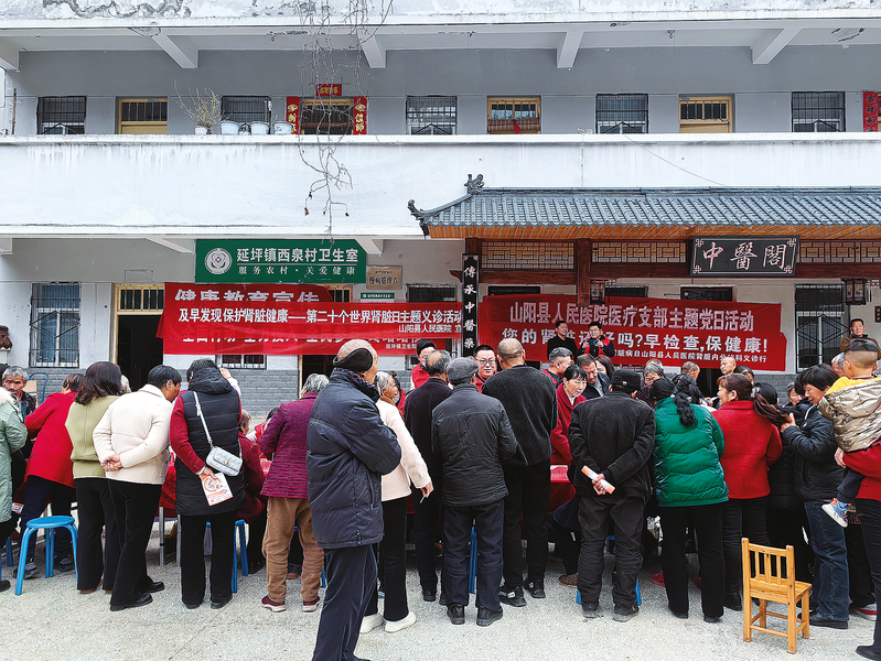 本报讯 (通讯员 刘 桢)3月13日是第20个“世界肾脏日”,山阳县人民医院组织医护团队走进延坪镇西泉村,开展以“您的肾脏还好吗?早检查,保健康”为主题的义诊活动。活动汇聚了肾脏内分泌科、神经内科、老年病科、肿瘤科、口腔科等多科室的专家力量,为村民送上“家门口”的免费健康服务。