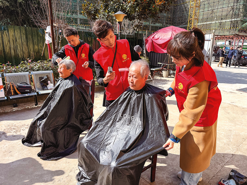 三月十九日,陕西交控商界分公司联合共青团商洛市委、商洛市中医医院走进商洛市百顺山庄老年公寓,开展“传承雷锋精神,情暖空巢老人”志愿服务活动。志愿者为空巢老人送去米面油、面包等,并为老人免费测量血压、血糖,修剪头发。(本报记者 方方 摄)