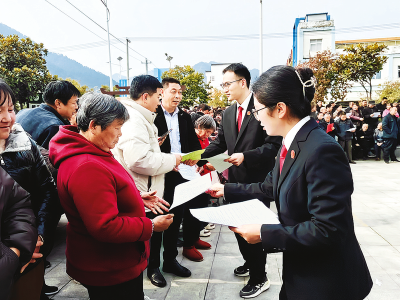 3月5日,丹凤县人民法院干警联合竹林关镇丹水社区“两委”干部在辖区开展秦岭生态环境保护普法宣传。活动现场,工作人员通过发放宣传资料、设立咨询台等形式,向群众普及相关法律法规,重点解读秦岭“五乱”违法行为后果,推动形成“人人守法、人人护绿”的乡村治理新格局。 (本报通讯员 王 蒙 摄)