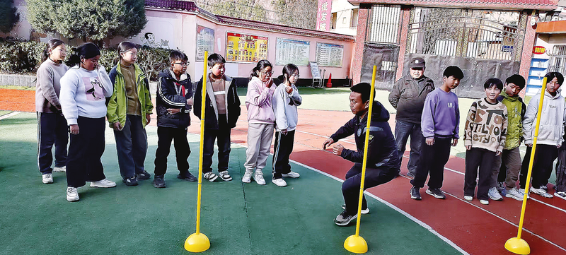 3月20日,商州区足球协会前往杨峪河镇中心小学开展足球公益活动。活动中,区足球协会向学校捐赠了一批体育训练器材,并与孩子们进行趣味运动互动,激发孩子们对足球运动的热爱。(本报记者 王孝竹 摄)