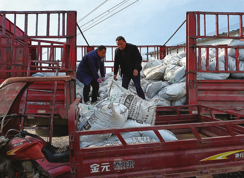 3月22日,洛南县柏峪寺镇庙坪村烟农领取烤烟专用肥,准备给烟田起垄。该村今年共计发展烤烟1030亩,预计收入515万元。(本报通讯员 刘功敏 摄)