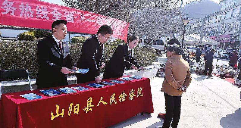 3月21日,山阳县人民检察院组织干警在高坝店镇开展12309检察服务热线全省“一号通办”普法宣传。活动现场,检察干警通过发放宣传资料、设立咨询台等形式,向群众普及相关法律法规。 (本报通讯员 杨 钊 摄)